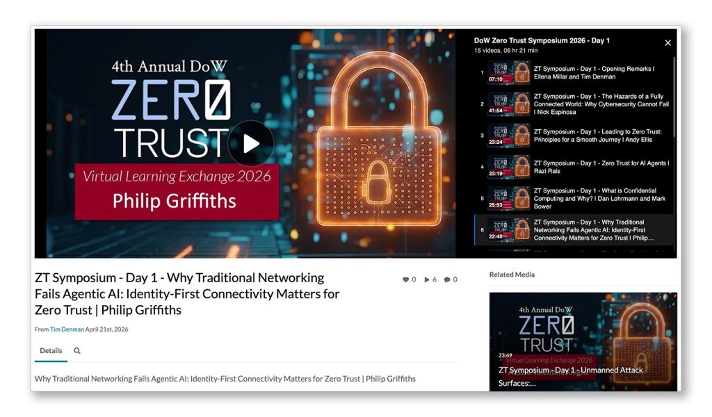 Recently I had the chance to speak at the 4th Annual DoW Zero Trust Learning Exchange, a collaboration between ATARC, DAU and the Cloud Security Alliance. My talk was simple in premise, but I think increasingly important: traditional networking still assumes you connect first and verify later. For Zero Trust, and especially for agentic AI, that is the wrong order. You can watch the entire presentation on-demand here.