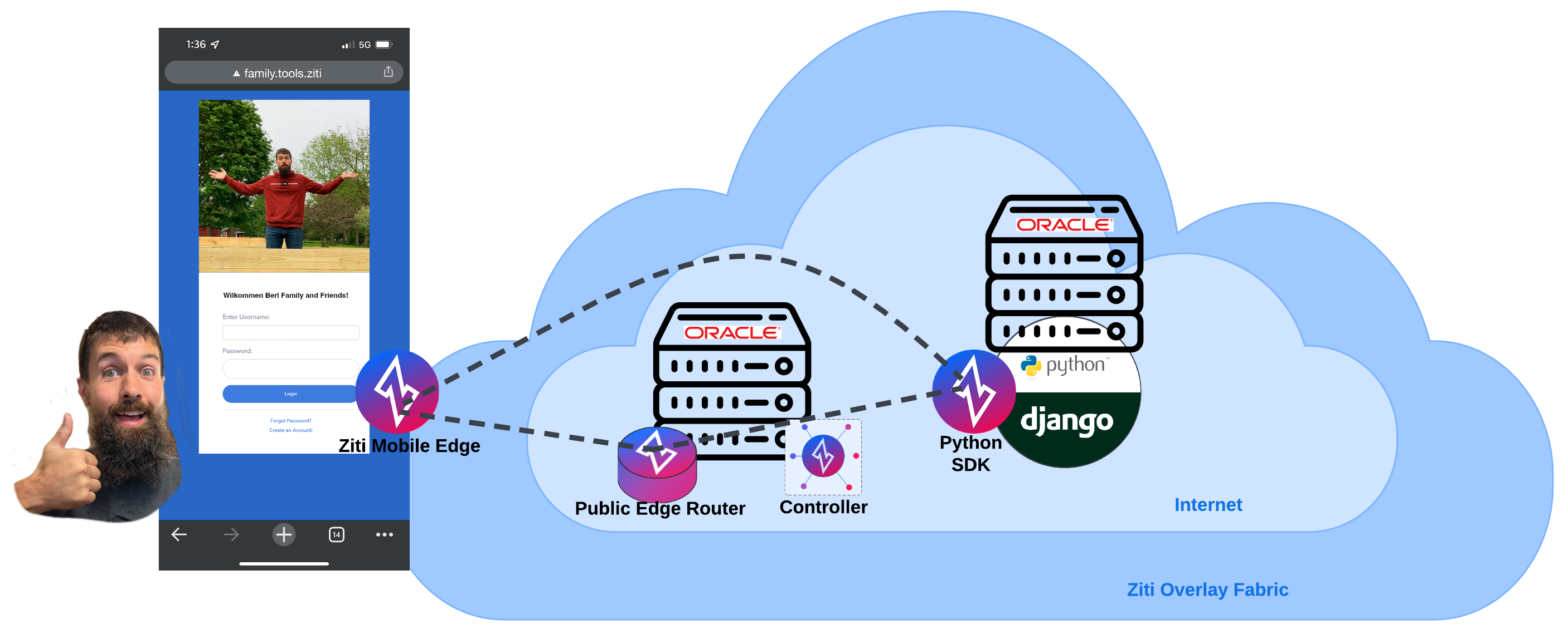 I have a website I built using Django; it's just a personal site meant to be used by friends and family. This makes it a perfect fit for zero trust as, I can hide it from the world and hand out specific access to friends and family I want to allow to use it. The site has all sorts of tools to keep track of things as a family. We have the "Tool Pool" so each friend or family member can see who has what special tools so they can borrow them instead of buying their own, and it keeps track of who borrowed what. There's another called "Packer Tracker" which keeps track of what you bring on a camping trip (personal or shared trip) so you can review what was missing or isn't needed for future trips and see what other people are bringing on a shared trip. There are many others, but, in any case, this site is just a personal site to be used on an invite-only basis, so I don't need the world to have access to it, but I do want it publicly available for those using it. So, I spun up an Oracle cloud instance (totally free "forever") and hosted it there. Currently, I create an account and send a link to anyone who wants to use it. The problem is it's still publicly accessible and prone to security issues from unwanted guests and/or web crawlers. I already have an OpenZiti zero trust network running in another Oracle cloud instance where I've secured my NAS, CCTV, and HomeAssistant access with zero trust, so why not just add this?
