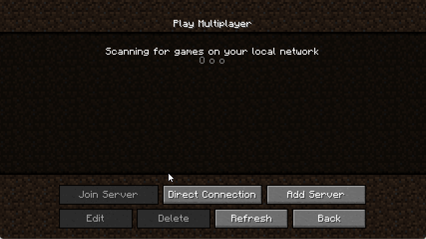 Once you see that, you're ready to connect in Minecraft! Open up Minecraft, click on Multiplayer, choose "Direct Connection" and you're connected! (if you're wondering, the gif is limited to 10fps for size). You can also choose to edit/save the server, if you prefer to do that.