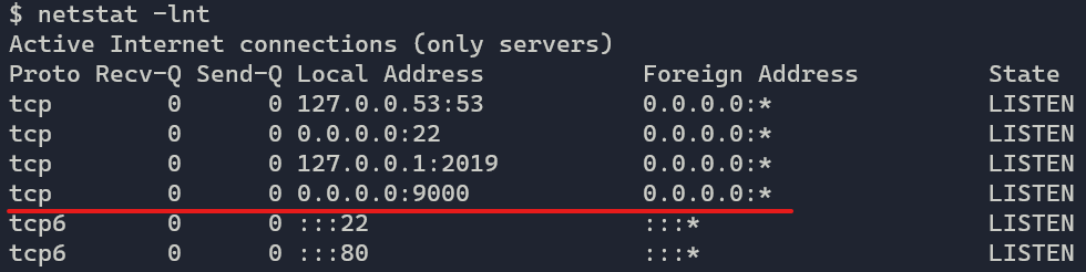 But how do we know the port is listening? Every operating system provides tooling for inspecting open sockets. One common tool to look at open sockets that ships with most operating systems is netstat