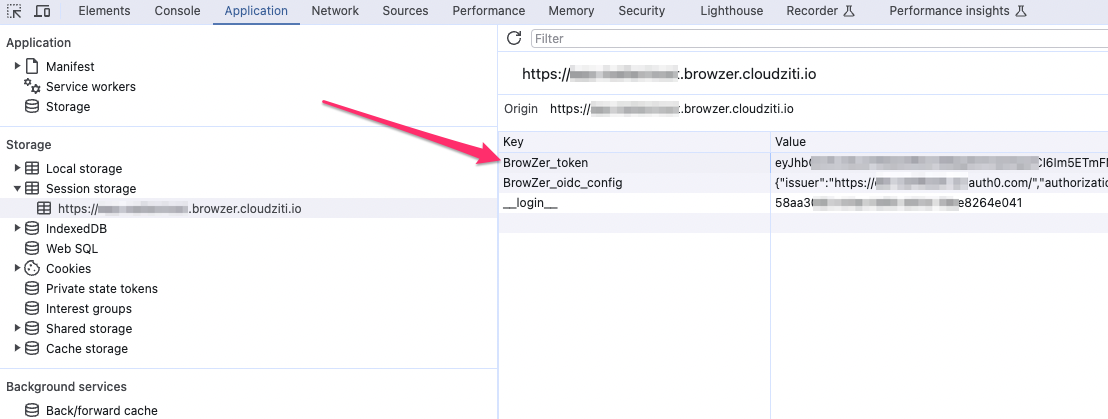 When the PKCE flow completes, the IDP delivers the access token, and BrowZer stores it locally in the browser's session storage.