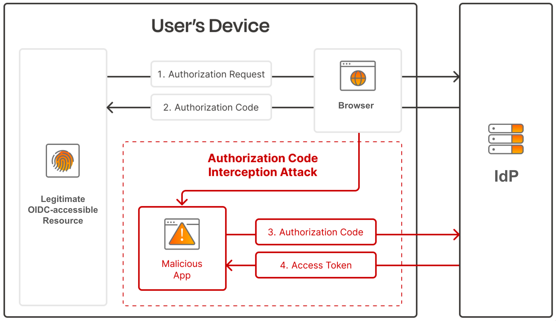 One popular method malicious actors use to intercept authorization codes is by registering a malicious application on the user’s device (e.g. a browser extension). This malicious application will register and use the same custom URL scheme as the client application, allowing it to intercept redirect URLs on that URL scheme and extract the authorization code: