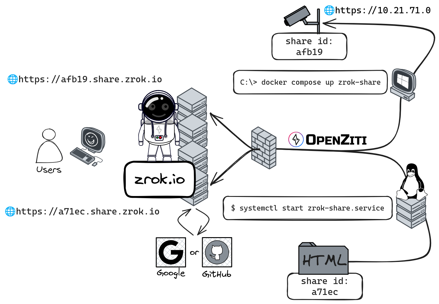 Convenient deployment: The lightweight zrok share service installs as a Linux package or a Docker Compose project. Scripts and Ansible playbook are published with the zrok frontdoor guide.