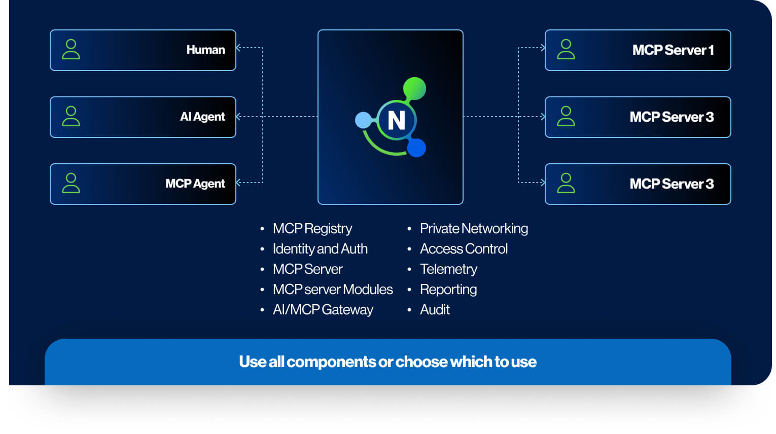 NetFoundry can enforce existing enterprise identities, and add strong identities for humans, AI agents, and MCP servers. This can include continuous authentication, posture and MFA. NetFoundry even provides a PKI-based system for proof of possession identity.